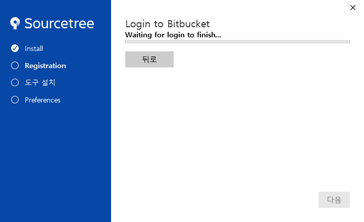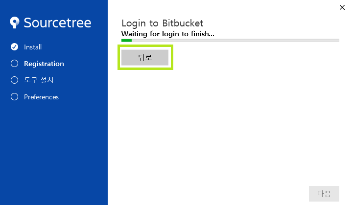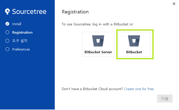무슨 영문인지 다음으로 진행이 안되어 다시 뒤로 갔다가 Bitbucket을 클릭했습니다.