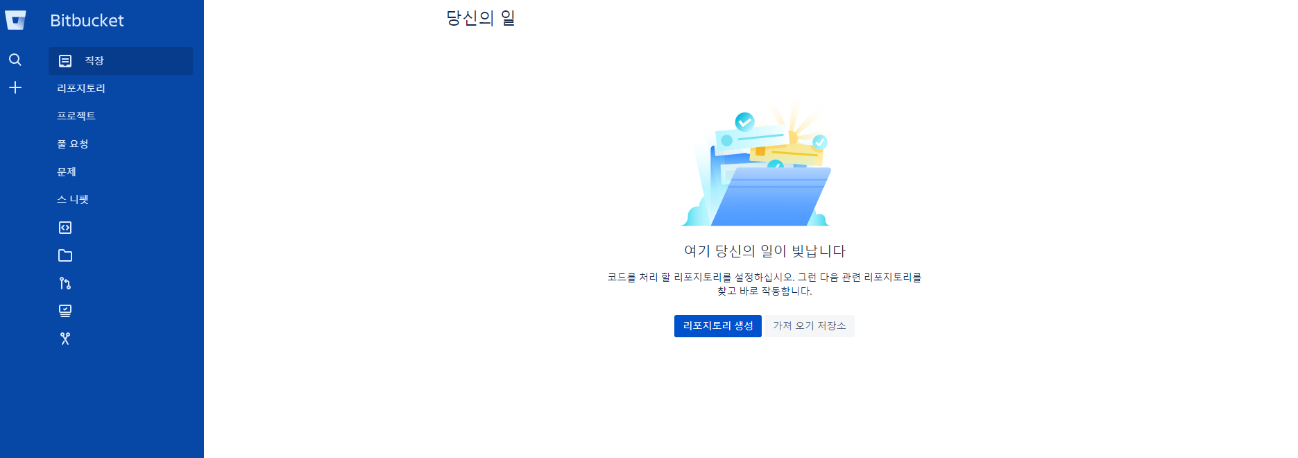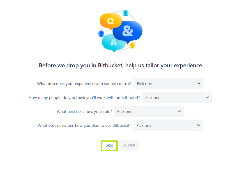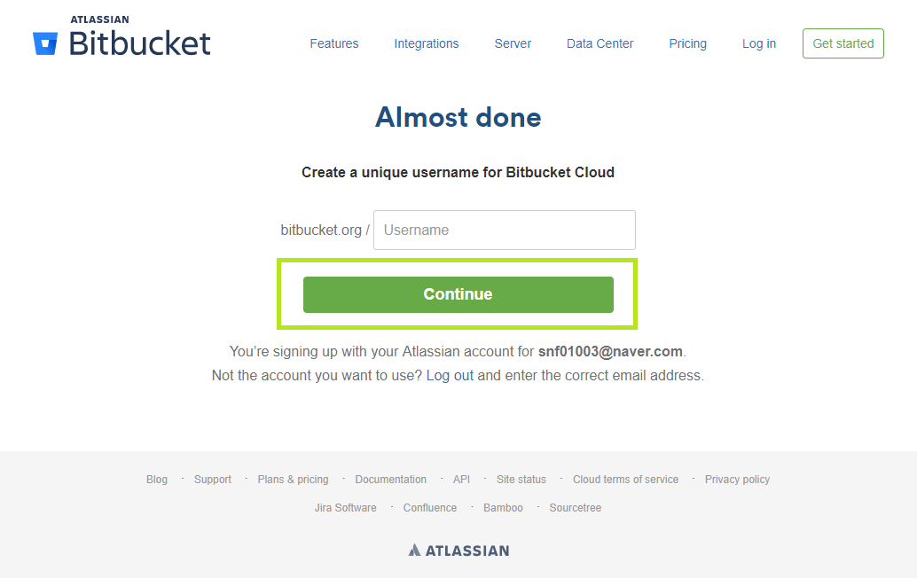 Skip을 누르면 Bitbucket 계정이 생성되었습니다.