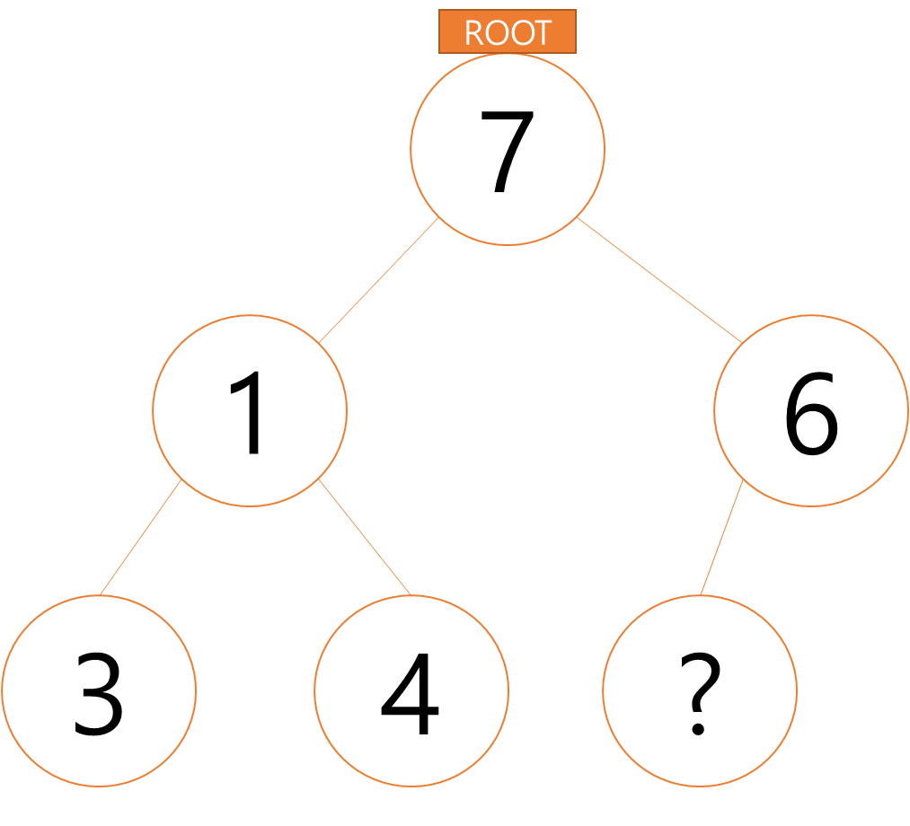 예시 : '?' 위치 노드에 신규숫자 5가 추가가 되면 부모노드인 7보다 작은 숫자이기 때문에 서로 교체가된다. 이런 과정을 거쳐 제일 작은 최소값이 'ROOT'로 향해 정렬되게 되는 것이다.