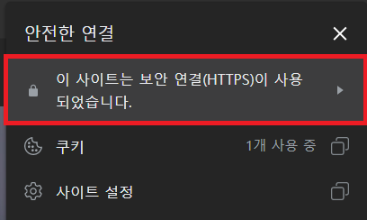 ① 웹 URL 왼쪽 자물쇠 이미지를 클릭한다.