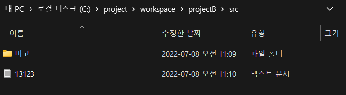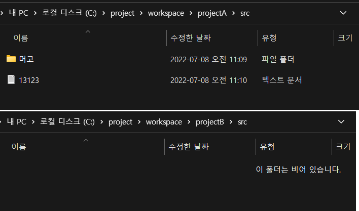 4) 기존에 세팅한 projectA 폴더에 있는 파일들이 projectB로 복사되었을 것이다.