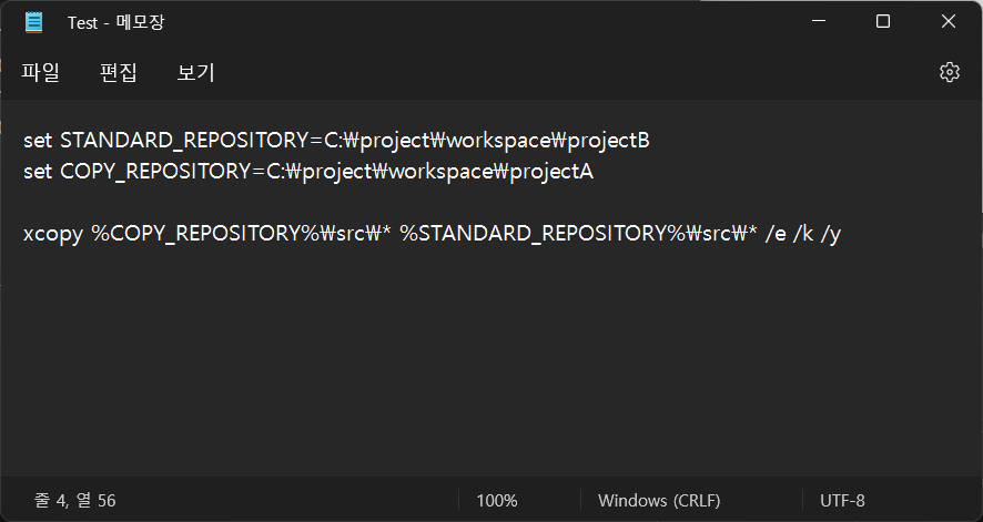 set COPY_REPOSITORY=C:\project\workspace\projectA