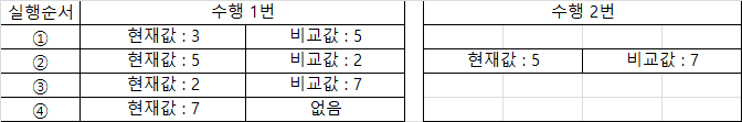 가로 ④. 5와 7 비교 후 결과 스택에 push 하고 임시 스택에 5를 push 한다.