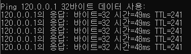 - ping은 기본포트가 80으로 설정되어 있기 때문에 해당 IP에 80포트 접근이 막혀있다면 실행되지 않는다. ping은 안되는데 telnet으로 다른 포트 연결을 확인할 때 될 수 있음.