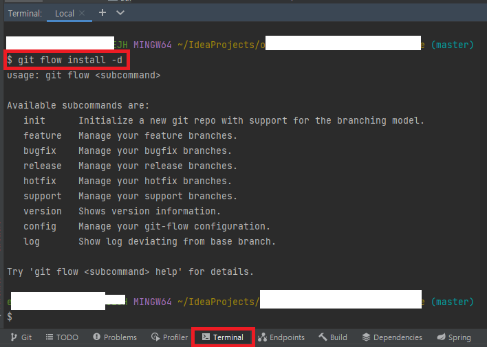 1) Git intelliJ 제일 하단에 Terminal 탭을 클릭