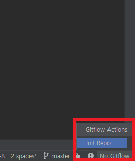 1) intellij 우측 하단에 'No Gitflow' 클릭 후 'init Repo' 선택