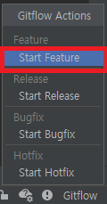 1) init이 완료되면 intellij 화면 우측 하단에 Gitflow를 클릭 후 Feature < Start Feature를 선택한다.