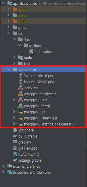 통합 버전을 사용하기 위해서는 index.adoc 파일과 swagger-ui 파일이 필요하다.