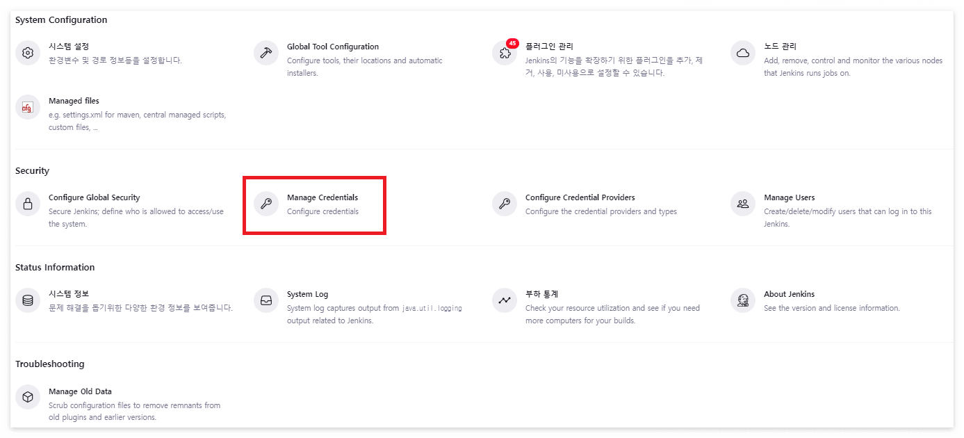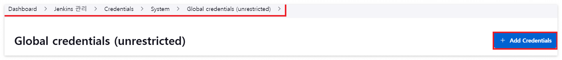아래 빨강 박스 경로까지 접근 후 Add Credentials 버튼을 클릭한다.