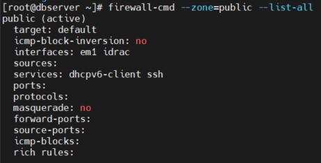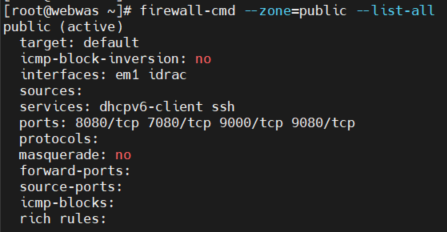 - firewall-cmd --zone=public --list-all