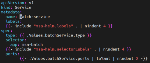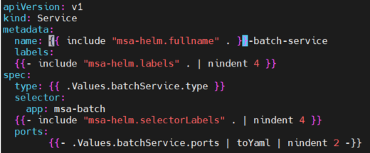 templates 폴더에 들어가서 모든 service.yaml의 metadata.name: 에서 {{ include "msa-helm.fullname" . }}- 꼭 이걸 지워야 한다.
