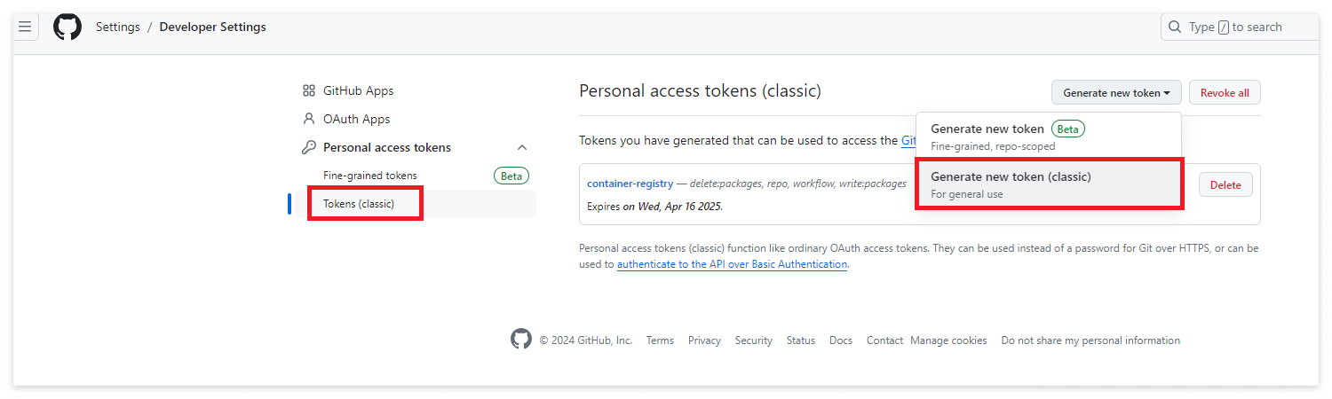 이 토큰은 Docker를 로그인할 때 사용하는 Password이다.