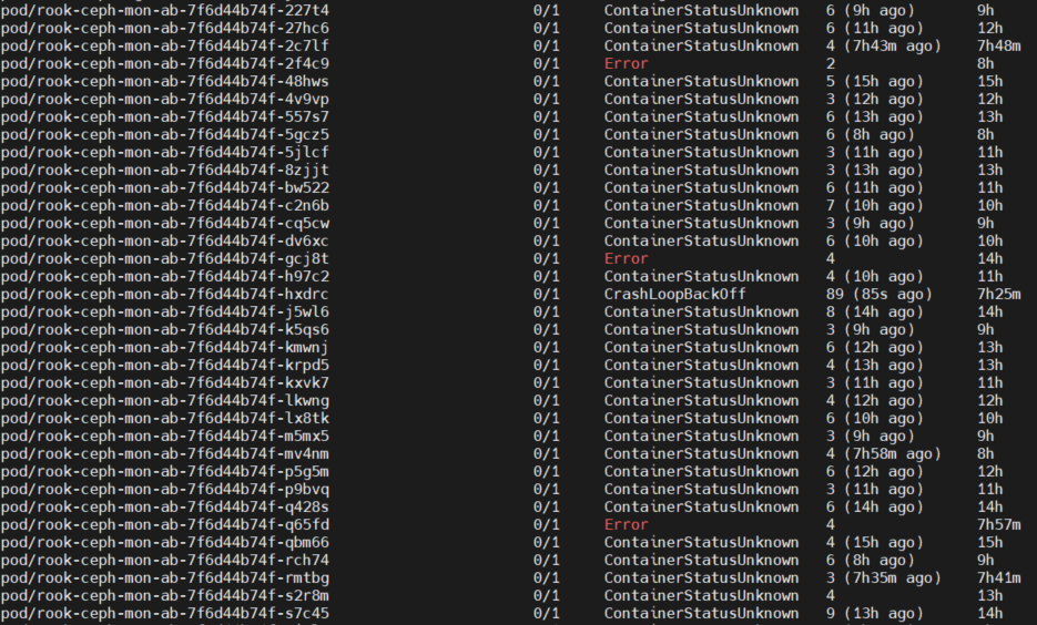 그래서 먼저, rook-ceph pod 상태를 확인했다.