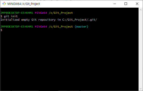 이후 다시 git init을 입력하니 이상 없이 잘 지정되었군요.