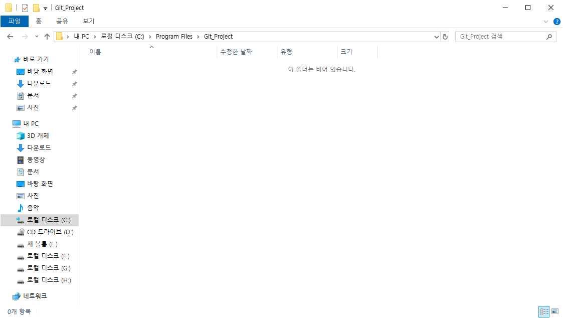 이제 Web상의 Git과 연결될 폴더를 생성해줍니다.