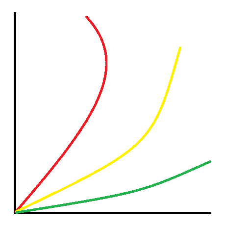 위 그래프에서 빨강선 > 노랑선 > 초록선 순으로 비효율적이다.
